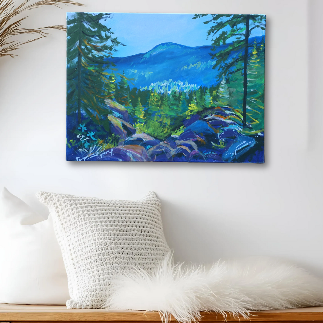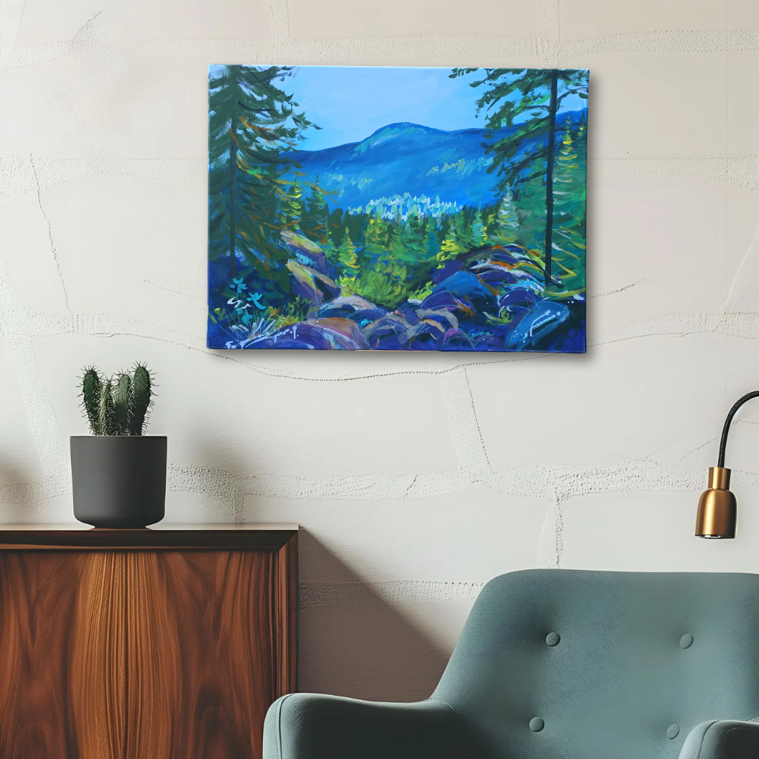 Die Entstehung von "Ein Dialog des Bergblicks" war für mich eine tiefgreifende Reise in die Tiefen meiner künstlerischen Seele. Jeder Pinselstrich, jede Farbwahl spiegelt einen Teil meiner Erfahrung und Introspektion wider.