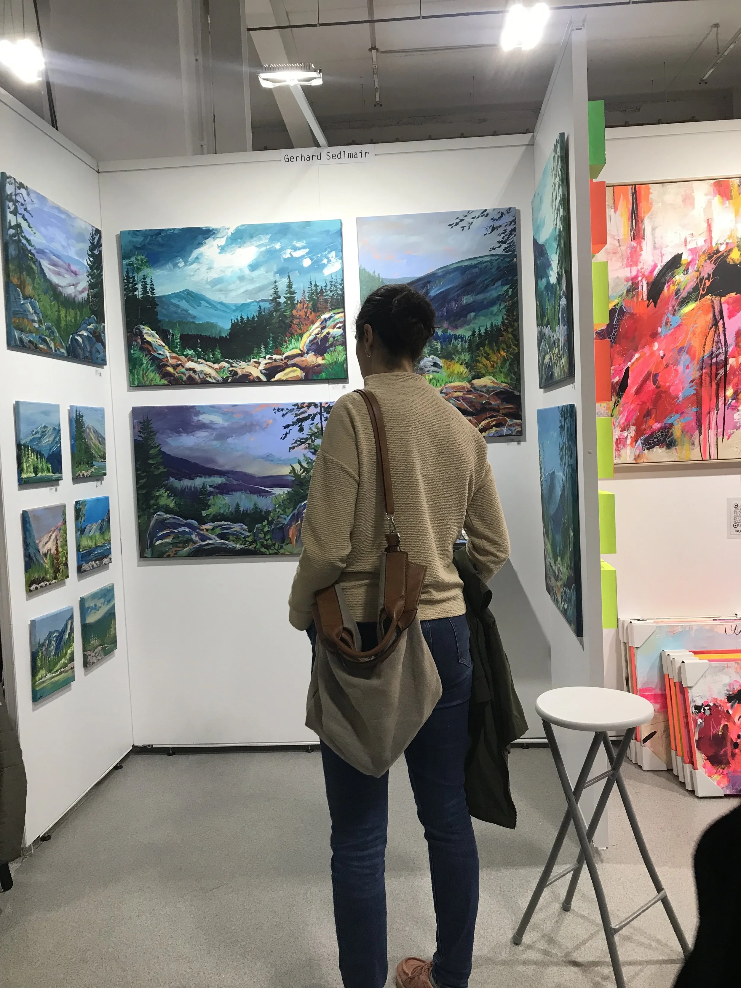 Besonders gefreut hat es mich, zwei meiner Herzensserien vorzustellen: "Die Poesie des Bergblicks" und "Im Kreislauf des Lebens". Es ist immer wieder schön, die Geschichten und Inspirationen hinter meinen Werken zu teilen und zu sehen, wie sie bei anderen ankommen. Wir hatten sehr interessante Gespräche über die Bedeutung von Natur, Emotionen und dem ewigen Fluss des Lebens, die sich in diesen Serien widerspiegeln.
